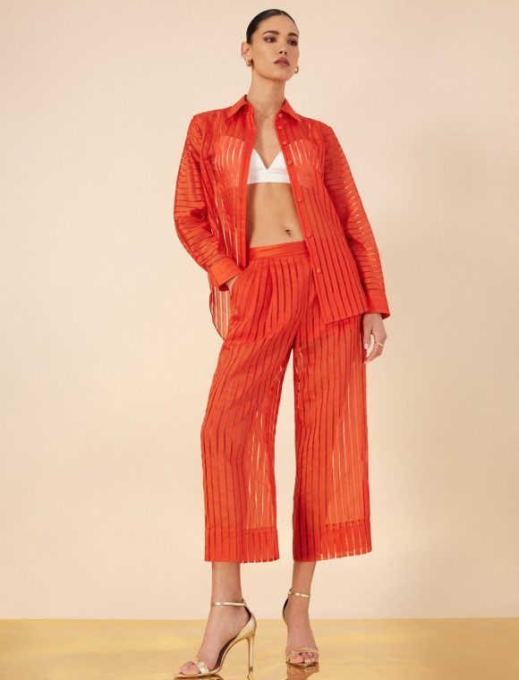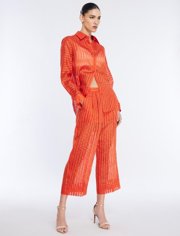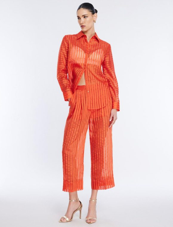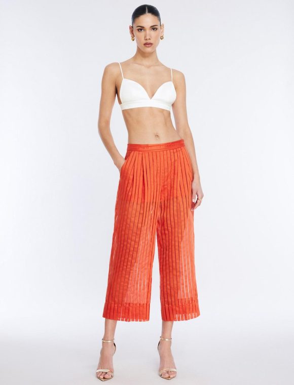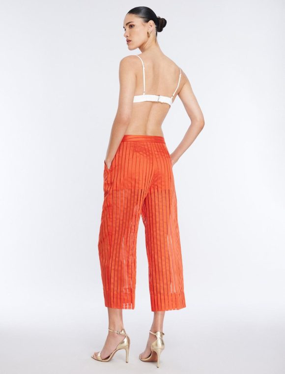 Women Bottoms | BCBG Sheer Stripe Wide-Leg Pant Pumpkin