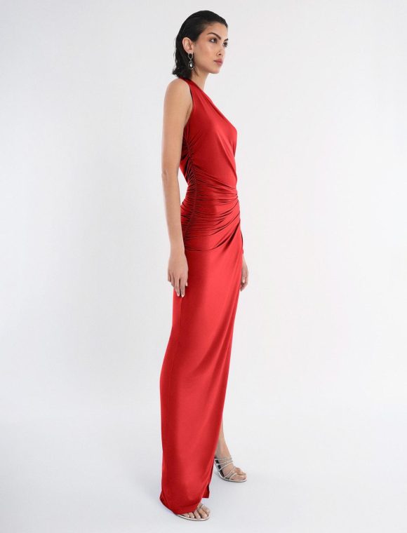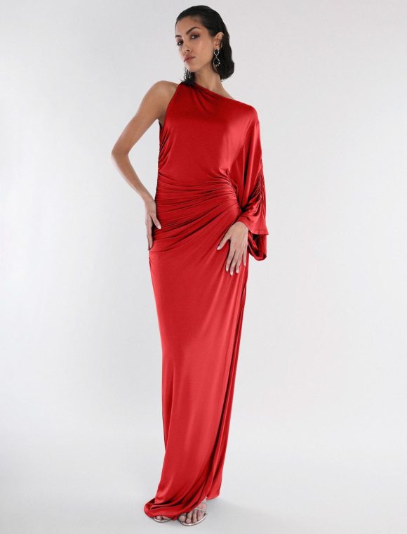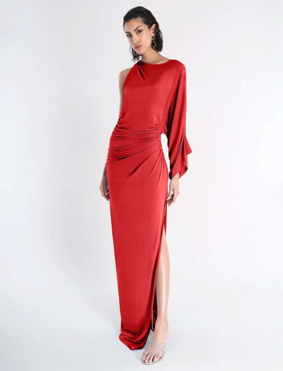 Are you looking for a ruched dress that’s just as elegant as it is modern? Shop BCBGMAXAZRIA’s Merritt Evening Gown, a one sleeve dress with draping!