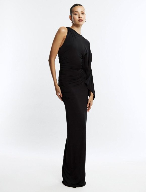 Are you looking for a ruched dress that’s just as elegant as it is modern? Shop BCBGMAXAZRIA’s Merritt Evening Gown, a one sleeve dress with draping!