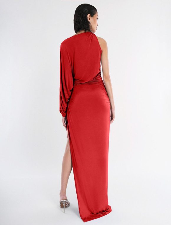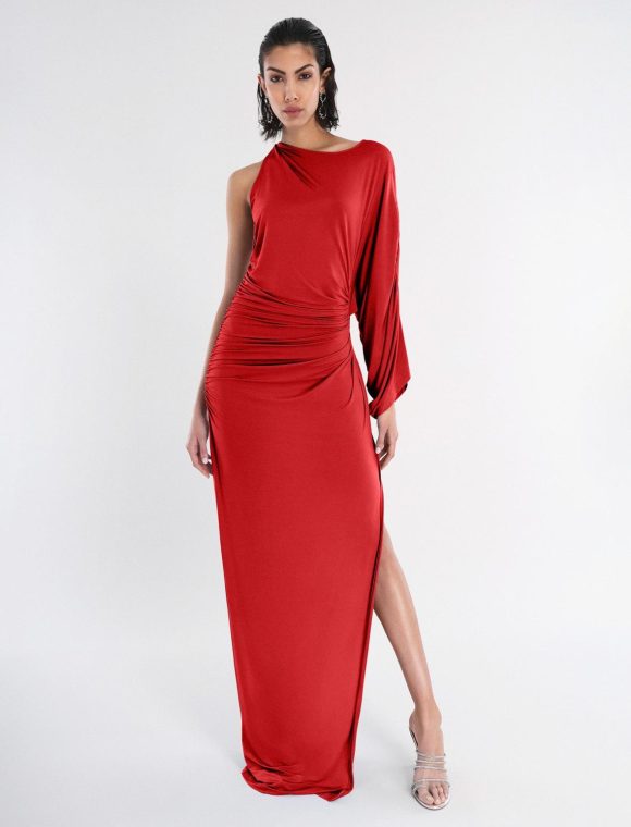Are you looking for a ruched dress that’s just as elegant as it is modern? Shop BCBGMAXAZRIA’s Merritt Evening Gown, a one sleeve dress with draping!