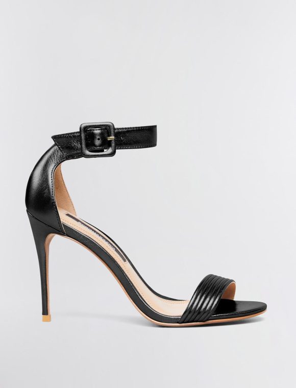 Glam heeled sandal with an ankle strap and stiletto heel. Perfect with gowns, cocktail dresses and jeans.