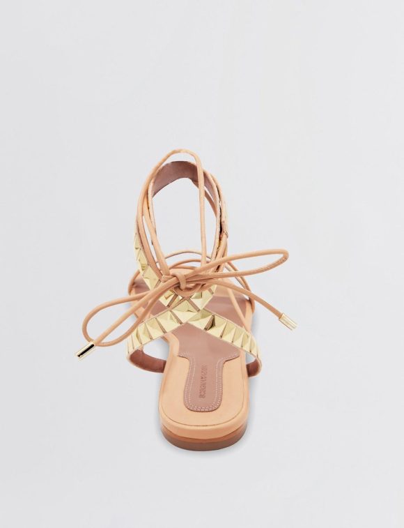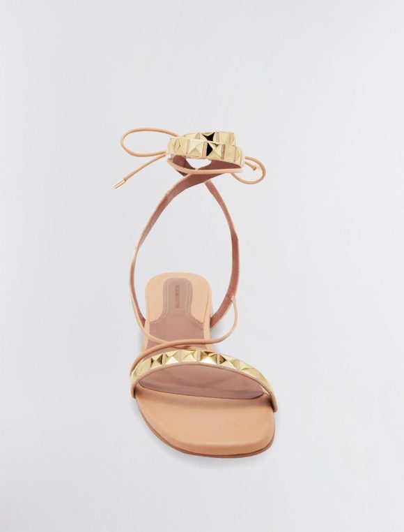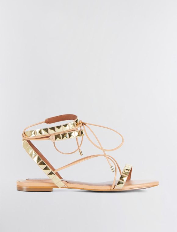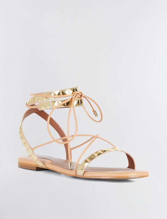 Strappy flat leather sandal, perfect for everyday wear, all season long. Topped with pyramid stud detailing and finished with an ankle tie.*This item is not eligible for Express or Premium shipping