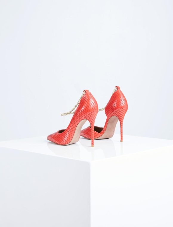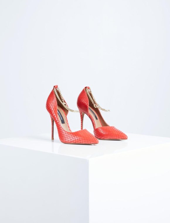 Showstopping pump crafted from embossed leather. Cut in a D’Orsay silhouette.