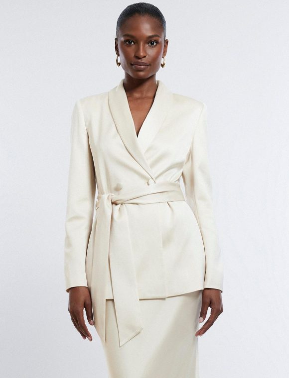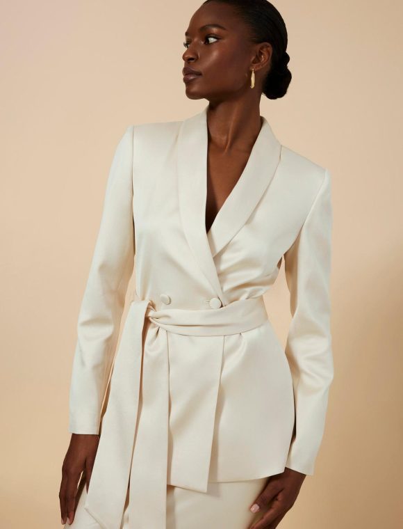 Women Suiting | BCBG Harrison Satin Blazer Champagne