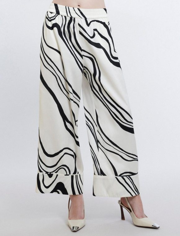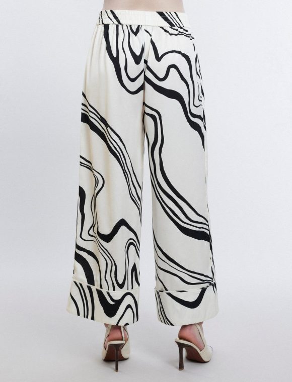 Perfect wide-leg pant in printed satin, crafted in a high-waisted pull-on silhouette. Hits above the ankle.